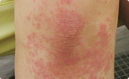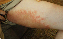 皮肤持续性剧烈瘙痒,发病急,常呈对称分布,以头面、四肢和外阴部好发。红斑、丘疹、水疱、脓疱、糜烂、结痂等各型皮疹可循序出现。